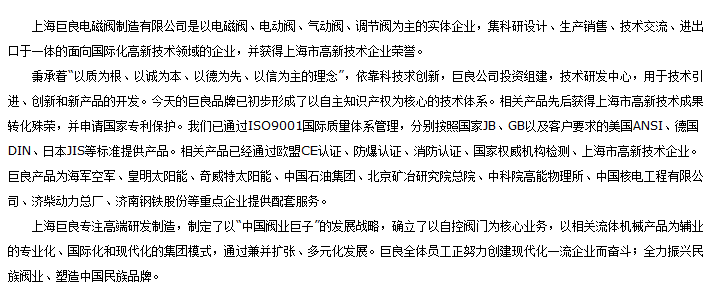 上海巨良電磁閥制造有限公司公司簡介,關于上海巨良電磁閥制造有限公司