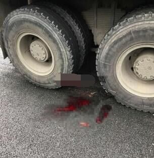 記者看到,水泥攪拌車右后輪處有一大攤血,邊上掉著一塊十多厘米長的骨頭。水泥攪拌車車后還有一條七八米長的血跡。