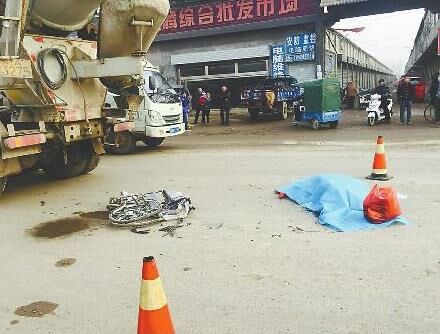 老人的遺體被藍(lán)色塑料布蓋著,一邊還有一個(gè)紅色塑料袋,里面放著老人剛從集市買(mǎi)的棉衣和棉褲,事發(fā)現(xiàn)場(chǎng)附近立著兩個(gè)警示栓,攪拌車(chē)停在遺體旁邊,司機(jī)在車(chē)內(nèi)。此時(shí),在不遠(yuǎn)處集市上賣(mài)水果的,老人的小兒子已經(jīng)趕到現(xiàn)場(chǎng),他情緒悲痛,正在配合民警做調(diào)查。