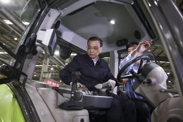 在中聯(lián)重科農機裝備制造基地,李克強總理參觀了高端拖拉機生產線、大馬力拖拉機、生物制料機等科技創(chuàng)新產品,并登上一輛企業(yè)自主研發(fā)生產的PL2304大馬力拖拉機,這臺高性能、智能化的“大家伙”足有一人高的輪子、深耕可達半米??偫磉^去考察東北時提出要在制造大馬力拖拉機上實現(xiàn)突破。此后國產拖拉機一路加“馬”。總理說,農業(yè)現(xiàn)代化需要大馬力拖拉機,“中國制造2025”更需要大馬力發(fā)動機。