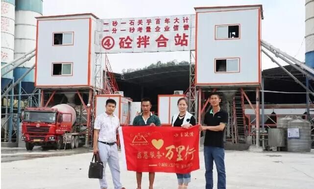 回訪團(tuán)到達(dá)2HZS60水泥混凝土攪拌站工地,查看了設(shè)備運行情況,與攪拌站站長深入交流,攪拌站站長告知設(shè)備運行良好,出料很給力,在整個工程工期中得到保證。