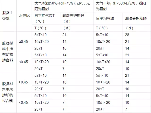 不同混凝土潮濕養(yǎng)護的最低期限
