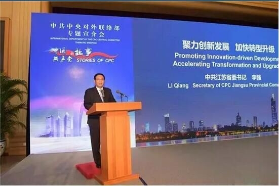 8月31日,中共中央對外聯(lián)絡部在京舉行“中國共產(chǎn)黨的故事:江蘇省委的實踐——創(chuàng)新驅(qū)動、轉(zhuǎn)型發(fā)展”專題宣介會,邀請中共江蘇省委向訪華的外國政黨政要、駐華使館高級外交官、外國商會、跨國公司駐華代表等,宣介習近平總書記治國理政新理念新思想新戰(zhàn)略在江蘇的貫徹落實情況,展示江蘇省委落實習近平總書記重要指示精神,在創(chuàng)新驅(qū)動轉(zhuǎn)型發(fā)展生動實踐中的突出成效和經(jīng)驗做法。