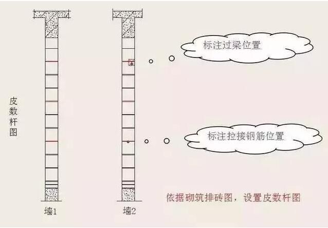 ( 2 )施工時在墻體轉(zhuǎn)角處立好皮數(shù)桿或利用混凝土墻柱做皮數(shù)桿,桿上標(biāo)明塊層、灰縫、窗臺板、門窗洞口、過梁、圈梁、預(yù)制件等的高度及位置,并應(yīng)隨時檢查其準(zhǔn)確性。