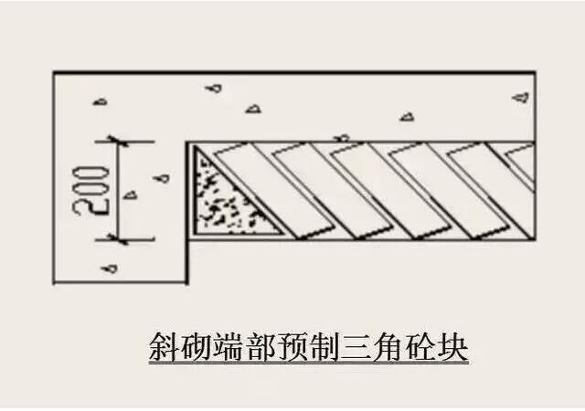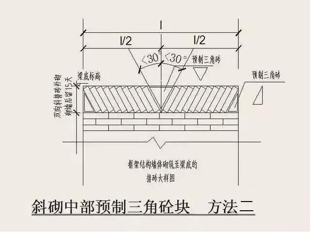 6)砌體頂部斜頂磚要求:砌到接近上層梁、板底約200mm,浮磚壓頂待下部砌體沉縮。在抹灰前(間 隔時間不少于14天),宜用實心磚斜砌擠緊,磚傾斜度為60度左右,砂漿應(yīng)飽滿,如圖所示: