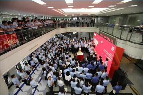 最后,祝福中聯重科25歲的生日蛋糕被推到臺前,詹純新董事長與全體員工共同為公司許下生日愿望。