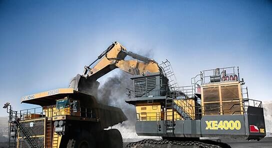 徐工國內(nèi)首臺400噸級液壓挖掘機和徐工巨型礦用自卸車在山西平朔煤礦施工