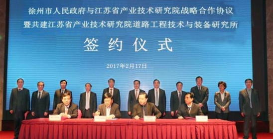 2月17日徐州市人民政府與江蘇省產(chǎn)業(yè)技術(shù)研究院戰(zhàn)略合作協(xié)議暨共建江蘇省產(chǎn)業(yè)技術(shù)研究院道路工程技術(shù)與裝備研究所簽約儀式