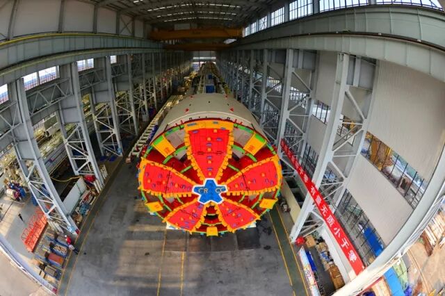 ▲鐵建重工自主研制的國產(chǎn)首臺常壓換刀式超大直徑泥水平衡盾構(gòu)機(jī)