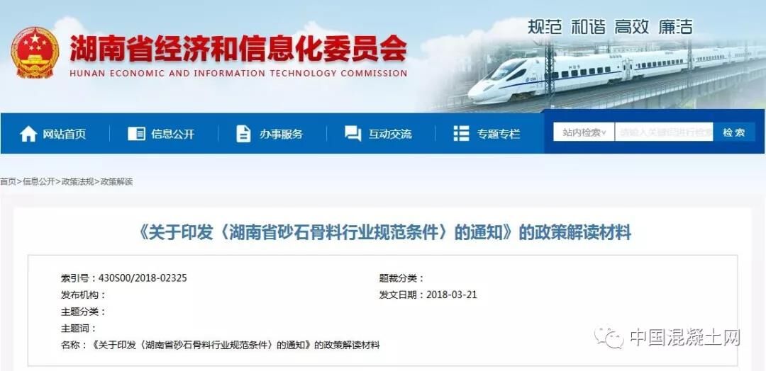 2018年3月2日,湖南省經信委《關于印發(fā)〈湖南省砂石骨料行業(yè)規(guī)范條件〉的通知》(湘經信原材料[2018]10號,以下簡稱《規(guī)范條件》)。該《規(guī)范條件》作為全省規(guī)范性文件已報省人民政府登記,經省政府法制辦審查并依法登記,統(tǒng)一登記號:HNPR—2018—05001。