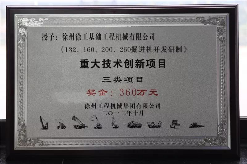 2011年,當年9月,徐工基礎推出首臺具有自主知識產(chǎn)權的EBZ160掘進機,其成功研制填補了徐工在煤礦掘進機方面的空白,當年順利通過煤安認證、實現(xiàn)銷售;2012年10月,EBZ135、160、200、260系列掘進機被授予徐工集團重大技術創(chuàng)新項目,獲得獎金360萬元。