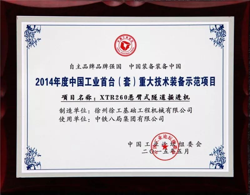 2014年6月,國內(nèi)首臺懸臂式隧道掘進機徐工XTR260研制成功,在大連等地進行隧道施工,有效提升了隧道施工質(zhì)量和效益,促進國內(nèi)隧道施工模式的轉(zhuǎn)變,填補國內(nèi)懸臂式隧道掘進機的空白;經(jīng)中國機械工業(yè)聯(lián)合會組織鑒定,其主要技術性能達到國際領先水平,該設備獲得江蘇省首臺套重大裝備認定和資金支持,為2014年度中國工業(yè)首臺(套)重大技術裝備示范項目。