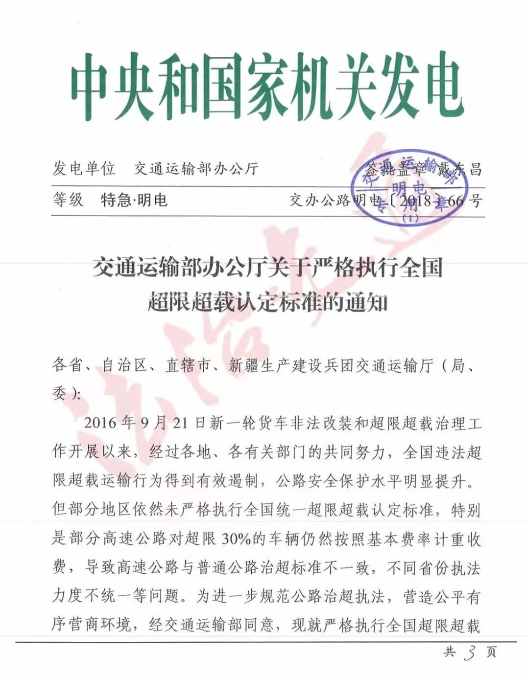 文件強調:部分地區(qū)依然未嚴格執(zhí)行全國統(tǒng)一超限超載認定標準,部分高速公路對超限30%的車輛仍然按照基本費率計重收費,導致高速公路與普通公路治超標準不一致,不同省份執(zhí)法力度不統(tǒng)一等問題。未按標準執(zhí)行的地區(qū),9月底前全面整改。