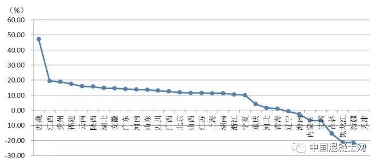 從各地區(qū)建筑業(yè)總產值增長情況看,有23個地區(qū)的建筑業(yè)總產值較上年同期有不同幅度的增長。其中,西藏、江西、貴州、福建、云南、陜西的增幅均超過15%。有8個地區(qū)出現(xiàn)負增長,其中,天津、新疆、黑龍江、吉林出現(xiàn)了15%以上的負增長(圖2)。