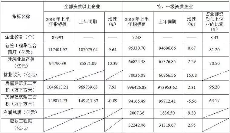 住房和城鄉(xiāng)建設部匯總的7248個特、一級資質建筑業(yè)企業(yè)2018年上半年主要指標數(shù)據(jù)如下(表1)。