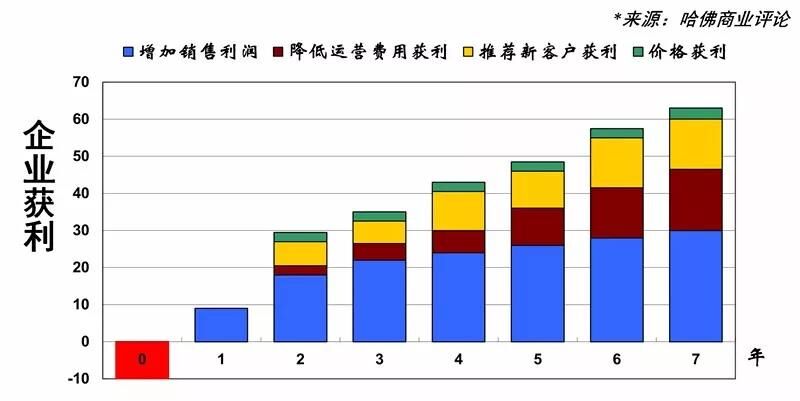 流失一位客戶并不是像把設(shè)備賣給一位客戶那樣做加減運(yùn)算,很多情況下,留住一位客戶并不是加1,而是加10,他們會(huì)帶來重復(fù)購買、錢包份額、口碑相傳、客戶推薦……