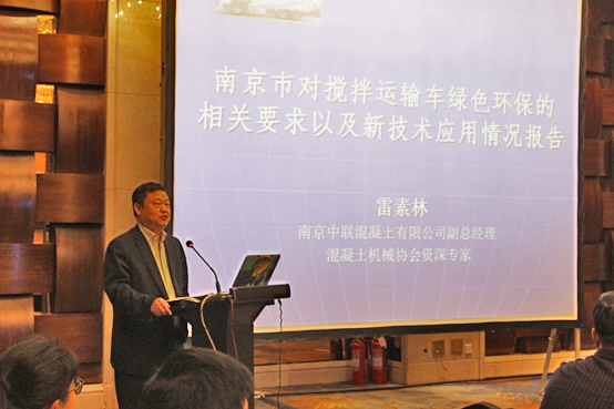 南京中聯(lián)混凝土有限公司副總經(jīng)理、混凝土機(jī)械協(xié)會資深專家雷素林先生作了《南京市對攪拌運(yùn)輸車綠色環(huán)保的相關(guān)要求以及新技術(shù)應(yīng)用情況報(bào)告》的主題演講,從南京環(huán)保和攪拌車治理過程中所遇到的問題提出了攪拌車在綠色環(huán)保和新技術(shù)應(yīng)用方面的以下幾點(diǎn)建議: