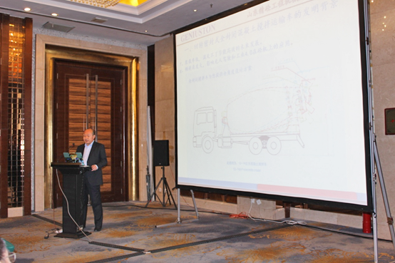 意大利普曼普(PMP)董事長Luigino POZZO先生作了《全球攪拌運(yùn)輸車的發(fā)展趨勢》的主題報(bào)告,Luigino POZZO先生詳細(xì)闡述了歐洲攪拌車在以下四方面的技術(shù)發(fā)展趨勢。一是安全性(Safety),二是對環(huán)境的影響(Environmental impact),三是攪拌(混凝土)質(zhì)量(Quality of mixing),四是操作員舒適性(Ergonomics/Operatorcomfort),并提出歐洲大攪拌運(yùn)輸車(超過10立方)是意大利和北歐(荷蘭)市場的主流型號,并已證實(shí)可以提高混凝土運(yùn)輸?shù)男?,更是用詳?xì)具體的對比數(shù)據(jù)闡述了這一結(jié)論。Luigino POZZO先生對國外攪拌運(yùn)輸車的發(fā)展趨勢的闡述給這次研討會提供了寶貴的意見。