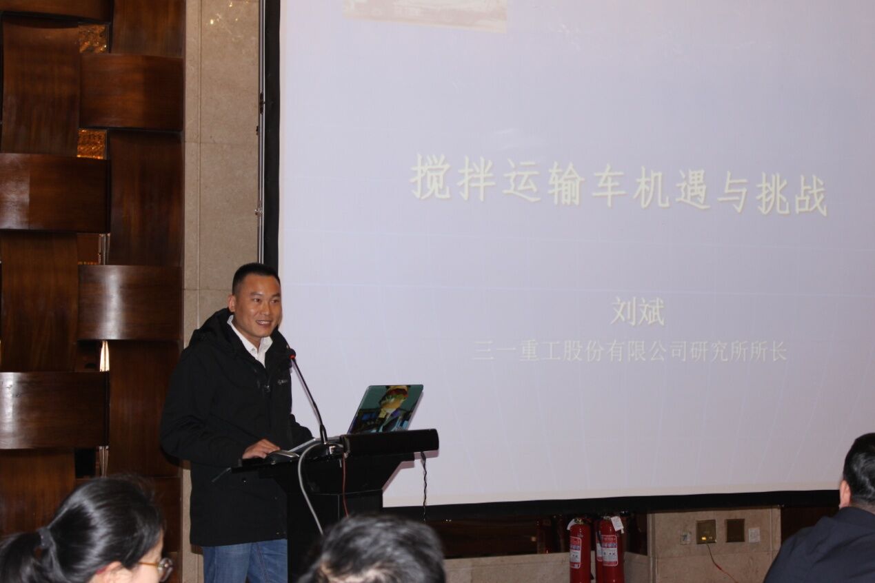 三一重工股份有限公司研究所所長劉斌先生作了《攪拌運(yùn)輸車機(jī)遇與挑戰(zhàn)》的主題報(bào)告,從攪拌車面臨的五大機(jī)遇和三大挑戰(zhàn)分析,提出攪拌車的研發(fā)與生產(chǎn)要回歸本質(zhì),即運(yùn)輸和質(zhì)量,保證安全運(yùn)輸、環(huán)保運(yùn)輸、合標(biāo)運(yùn)輸、保證運(yùn)輸?shù)幕炷临|(zhì)量。