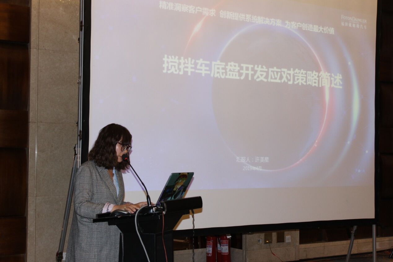 北汽福田汽車股份有限公司技術(shù)部部長許美星女士作了《適應(yīng)攪拌車新法規(guī)之底盤設(shè)計(jì)》的主題報(bào)告,結(jié)合攪拌車的發(fā)展趨勢介紹了重卡發(fā)展的總體趨勢以及政策法規(guī)制定進(jìn)程,有很多參考的價(jià)值和意義。同時(shí)許部長還介紹了認(rèn)證體系中的主要應(yīng)對項(xiàng)以及BFDA產(chǎn)品開發(fā)應(yīng)對策略,讓與會者對于配套的底盤及政策有了更多了解。