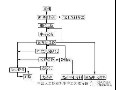 在北方天氣寒冷、干旱、少雨、水資源嚴(yán)重缺乏地區(qū),多采用干法制砂生產(chǎn)工藝。干法制砂生產(chǎn)工藝開始于上世紀(jì)90年代中期,經(jīng)過不斷發(fā)展和完善,逐步解決了干法制砂中的泥土含量、石粉含量和粉塵污染問題,不僅在北方中小型砂石廠廣泛應(yīng)用,而且在南方大中型水電人工砂石料系統(tǒng)也大量采用。