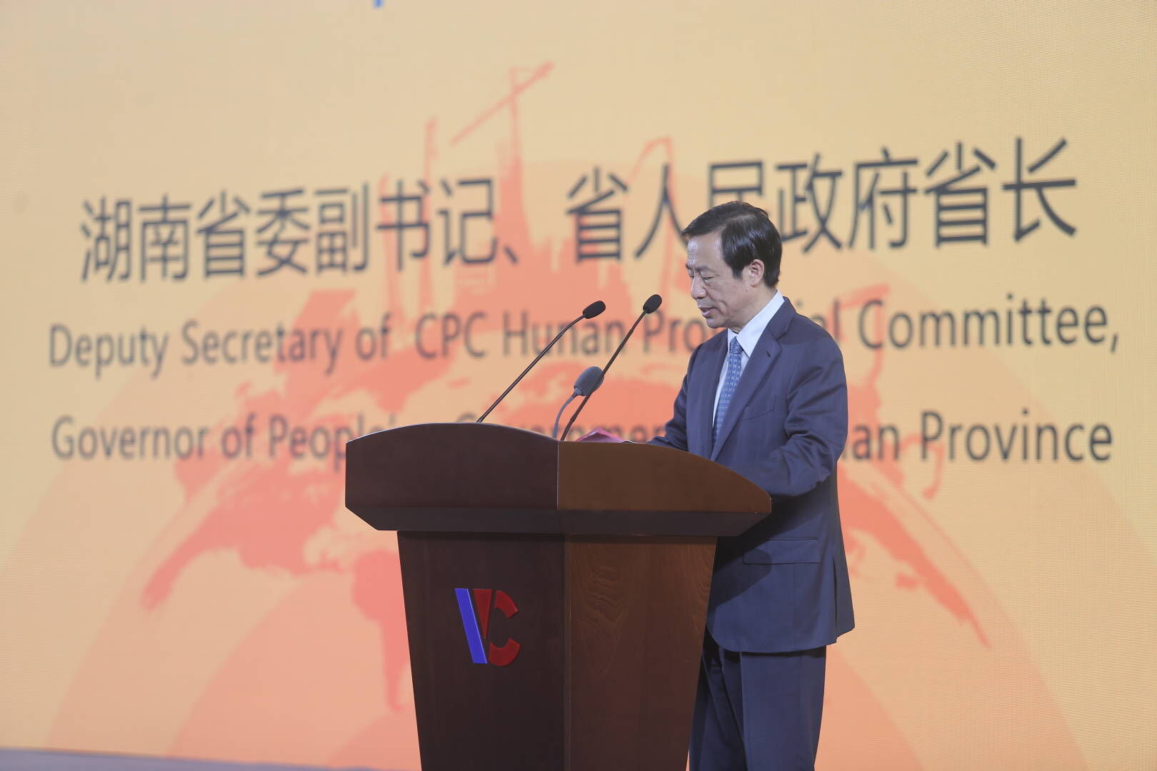 開幕式由湖南省省委常委、長沙市委書記胡衡華主持,工業(yè)和信息化部副部長辛國斌在開幕式上致辭。湯加王國駐華大使陶阿伊卡·烏塔阿圖、阿爾及利亞駐華大使艾哈桑·布哈利法、南蘇丹駐華大使約翰·安德魯加·杜庫以及湖南省省領導張劍飛、何報翔、張健等出席。