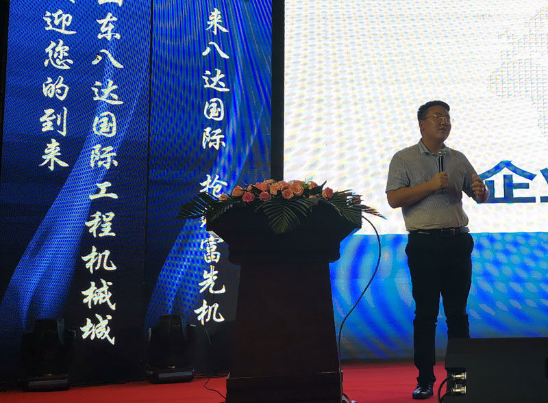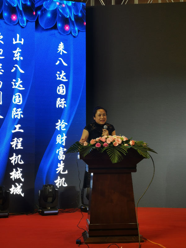 山東八達(dá)國際工程機(jī)械有限公司總經(jīng)理——于瑞杰致辭。于瑞杰總經(jīng)理表示山東八達(dá)國際工程機(jī)械始終秉承“工程建設(shè)生生不息,工程機(jī)械大有可為”的堅(jiān)定信念。全力打造國內(nèi)成交量最大的工程機(jī)械城。并通過資源、信息和客戶集中,實(shí)現(xiàn)貨比三家。讓客戶享受一站式服務(wù)得到全方位保障。我們希望通過此次大會(huì),把更多的工程機(jī)械和配件結(jié)合起來,把更多的買家請(qǐng)進(jìn)來,通過公平、公正、公開的交易,讓成交更快捷、更容易、更方便!