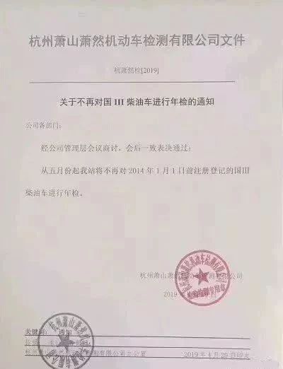 年初有消息稱,從5月起,杭州蕭山蕭然機(jī)動車檢測站將不再對2014年1月1日前注冊登記的國三柴油車進(jìn)行年檢!