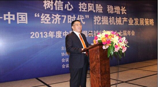 曾光安會長代表主辦方致歡迎詞,他在致辭中簡要介紹了2013年前三季度挖掘機(jī)市場銷量情況和當(dāng)前行業(yè)中存在的運行風(fēng)險。他指出:中國挖掘機(jī)械市場出現(xiàn)回暖勢頭,目前正處于一個高峰后的“煎熬”狀態(tài),長期發(fā)展謹(jǐn)慎樂觀。他希望行業(yè)企業(yè)通過此次年會,企業(yè)能夠正確認(rèn)識中國經(jīng)濟(jì)減速進(jìn)入“7時代”所帶來的影響,提振走出低谷、克難奮進(jìn)的信心,共同維護(hù)和推動挖掘機(jī)市場有序競爭與合作,控制風(fēng)險,實現(xiàn)全行業(yè)理性和可持續(xù)發(fā)展。