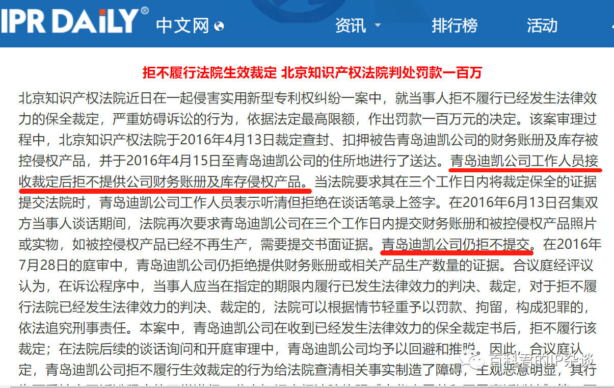 具體點就是,迪凱公司無正當(dāng)理由,拒絕按照保全裁定提供相關(guān)證據(jù)(甚至還曾被判處罰款100萬),應(yīng)當(dāng)承擔(dān)相應(yīng)的不利后果,從而推定上述主張成立。