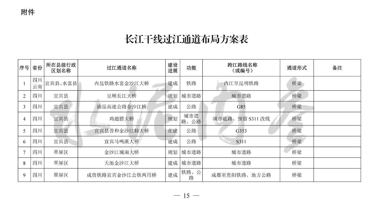 其中,到2035年規(guī)劃布局長(zhǎng)江干線過(guò)江通道276座,其中四川省45座、重慶市75座、湖北省69座、安徽省32座、江蘇省41座、上海市3座、滇川界1座、鄂湘界2座、鄂贛界6座、贛皖界2座。