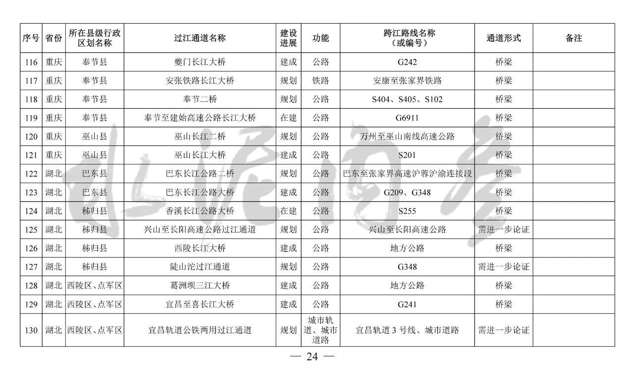 ??四、本《規(guī)劃》主要布局橫跨長(zhǎng)江干線主要航道、具有交通功能的過(guò)江通道項(xiàng)目,對(duì)于連接洲島與沿岸、洲島之間的通道項(xiàng)目和不具備交通功能的跨江、沿江建筑物,由省級(jí)發(fā)展改革委統(tǒng)籌布局編制相關(guān)規(guī)劃報(bào)送我委銜接后組織實(shí)施。