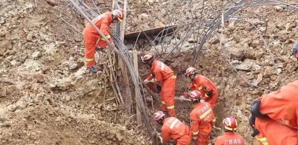 接到報警后,百色市消防救援支隊指揮中心立即調派7輛消防車45名消防指戰(zhàn)員趕赴救援。據了解,現場為一高壓輸電線塔的基坑(坑約10米深、2米長、2米寬)施工現場,4名工人正在基坑內能進行鋼筋捆綁作業(yè)時不料基坑突然塌方導致掩埋被困,其中1名工人在事故發(fā)生后20多分鐘被現場其他工友及時救出,仍有3名工人被埋坑內。