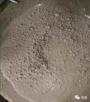 (4)砼表面無氣泡,而且周的碎石不裹漿,說明氣不足,或增稠多