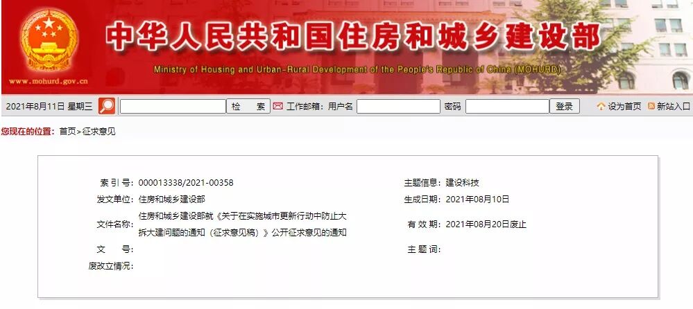 為深入貫徹黨的十九屆五中全會精神和“十四五”規(guī)劃綱要部署要求,指導(dǎo)各地積極穩(wěn)妥實(shí)施城市更新行動(dòng),防止沿用過度房地產(chǎn)化的開發(fā)建設(shè)方式,大拆大建,急功近利等問題,我部研究起草了《關(guān)于在實(shí)施城市更新行動(dòng)中防止大拆大建問題的通知》,現(xiàn)向社會公開征求意見。公眾可在2021年8月20日前,通過以下途徑和方式提出意見: