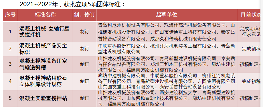 2022年召開第五屆中國工程機(jī)械工業(yè)協(xié)會(huì)標(biāo)準(zhǔn)化專家委員會(huì)(混凝土機(jī)械)全體會(huì)議,加強(qiáng)和促進(jìn)與會(huì)單位流,充分發(fā)揮專家委員作用,共同堆進(jìn)團(tuán)體標(biāo)準(zhǔn)發(fā)展。