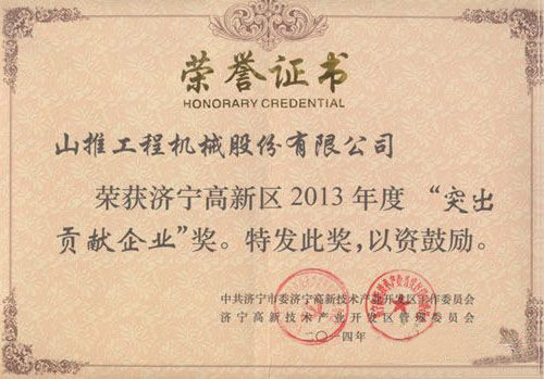 山推全年在區(qū)內(nèi)的科技創(chuàng)新與技術(shù)發(fā)展方面起到了輻射帶動作用,財(cái)政貢獻(xiàn)顯著,為全區(qū)經(jīng)濟(jì)社會又好又快發(fā)展做出了突出貢獻(xiàn)。根據(jù)《濟(jì)寧高新區(qū)管委會關(guān)于鼓勵企業(yè)創(chuàng)新發(fā)展的若干規(guī)定》(濟(jì)高新管發(fā)【2012】32號)文件精神,公司被授予“突出貢獻(xiàn)企業(yè)”與“專利特別獎”,同時(shí)獲得一項(xiàng)科技進(jìn)步獎與行業(yè)標(biāo)準(zhǔn)獎勵,研究總院副院長周士建博士榮獲“551人才”稱號。