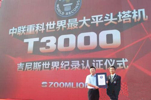 在交付儀式現(xiàn)場,英國吉尼斯世界紀(jì)錄認(rèn)證官陳東先生鄭重宣布,T3000是全球最大的平頭塔機(jī),由中國的中聯(lián)重科制造,再次創(chuàng)造了全球起重機(jī)械的又一個“世界之最”。“該項記錄的誕生標(biāo)志著中聯(lián)重科塔機(jī)技術(shù)站在了世界塔機(jī)設(shè)計和制造領(lǐng)域的最前沿,充分彰顯了中聯(lián)重科在全球起重機(jī)行業(yè)的領(lǐng)先地位和主導(dǎo)作用”,國家建筑城建機(jī)械質(zhì)量監(jiān)督檢驗中心主任曾舜安表示。