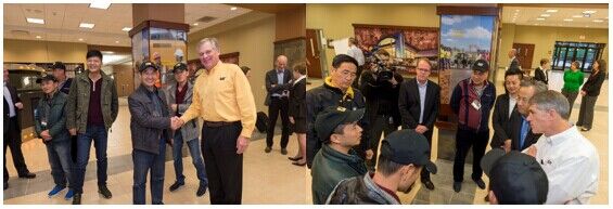 美國中部時間11月11日上午,Cat鋼鐵英雄爭霸賽盟主一行抵達卡特彼勒公司坐落于奧羅拉市的Cat裝載機工廠,展開為期兩天的卡特彼勒公司參觀訪問。隨后,盟主們輾轉(zhuǎn)皮奧里亞市,重溫卡特彼勒百年輝煌之路,訪問了生產(chǎn)推土機的卡特彼勒東皮奧里亞工廠和卡特彼勒的訪客中心,并在美國中部時間12日下午抵達愛德華茲演示與學習中心,通過遙控駕駛體驗了Cat D11T大型推土機。傍晚時分,卡特彼勒董事長兼首席執(zhí)行官道格拉斯?歐博赫曼與其他公司全球高層熱烈歡迎各位盟主的到來,并認真傾聽了他們對Cat產(chǎn)品設備的訴求。