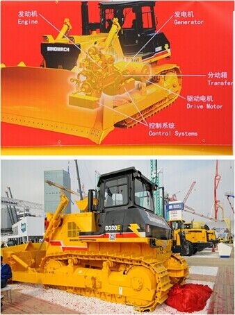 電傳動(dòng)大型礦車在大型礦山并不鮮見,但履帶式推土機(jī)采用電傳動(dòng)型式,在國內(nèi)尚屬首次,國機(jī)重工在bauma2014推出了D320E電傳動(dòng)履帶式推土機(jī)。