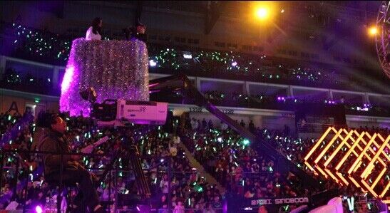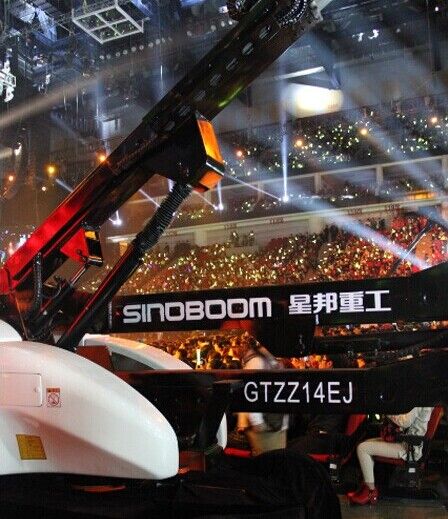 當(dāng)節(jié)目進(jìn)行到一個(gè)多小時(shí)的時(shí)候,楊鈺瑩正在進(jìn)行表演的同時(shí),楊冪和劉愷威已經(jīng)同時(shí)靜靜的上到了舞臺(tái)兩側(cè)的兩臺(tái)星邦重工GTZZ14EJ自行曲臂式高空作業(yè)平臺(tái)上,節(jié)目開(kāi)始后,兩臺(tái)設(shè)備分別由星邦重工的兩名專(zhuān)業(yè)技術(shù)人員操作,配合著《想把我唱給你聽(tīng)》的音樂(lè)節(jié)奏,緩慢的升起,轉(zhuǎn)向觀眾席,再轉(zhuǎn)向主舞臺(tái),然后緩慢的落下,整個(gè)過(guò)程非常穩(wěn)定,直播效果也非常好,現(xiàn)場(chǎng)更是贏得了觀眾的經(jīng)久不息的尖叫和掌聲。