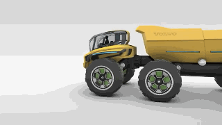 Centaur鉸接式卡車具備強大的裝載能力,其載重能力或?qū)⒊^40噸,巨大的輪胎和堅固的底盤支撐起了這只龐然大物。Centaur鉸卡采用了非常獨特的懸掛設(shè)計,6個輪胎分別獨立地與主軸連接,連接處可以自由轉(zhuǎn)動,這使得Centaur在坎坷不平的路面上如履平地。