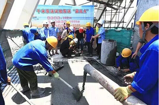 C100混凝土指的是混凝土抗壓強(qiáng)度為100MPa的混凝土,即1平方米C100混凝土上能承受一萬噸的重量。當(dāng)前,國內(nèi)C100混凝土研發(fā)與使用高度尚在探索中,將C100混凝土泵送到1000米完全是建筑行業(yè)最前沿的探索。