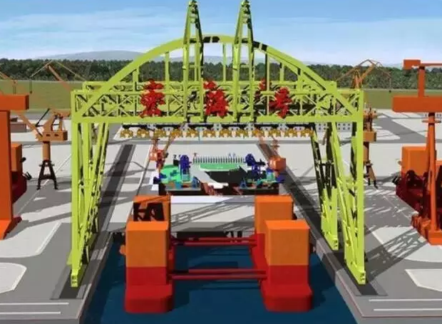 “宏?!碧?2000噸起重機,主要用于海上石油鉆井平臺整體的從陸地運到海上,將以往“化整為零”的建造方式變?yōu)椤罢嬲 ?。借?2000噸起重能力的“大家伙”,把拼裝好的海洋油氣鉆井平臺從陸地上的專用拼裝胎位上提起來,直接放到海上去。設備總體高度150米,提升高度最高為65米,相當于把重量為500節(jié)高鐵車廂或20層樓高的超重、超大型物件提升起來并行走。主體采用桁架式結構、拱形外觀、多吊點雙吊梁承載,跨度124.3米,宏海號總重14800噸,相當于兩個埃菲爾鐵塔的重量。“開下門,快遞到了啊,你的鉆井平臺~”