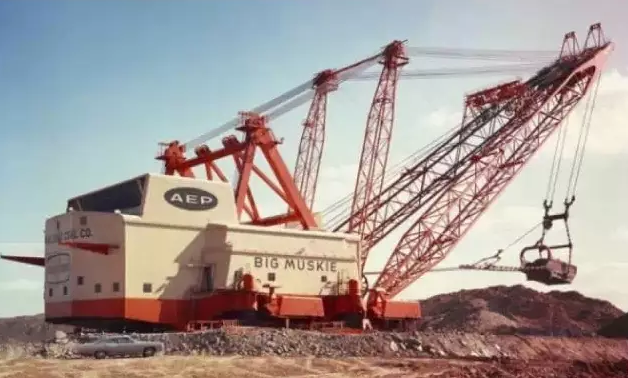BIG MUSKIE官方編號為BE-4250W,是迄今最大的步進式拉鏟,1967年B-E開始為美國的一個露天煤礦建造它,直至1969年5月建成并投入使用,當時的制造費用為2500萬美元,專門用于土石剝離。它有22層樓高,用13800V高壓電驅動,僅空鏟斗的重量就有209噸;1991年Big Muskie因礦區(qū)采空而停止運行,1999年爆破拆解,僅鏟斗留存下來。有卡車對比圖哦~