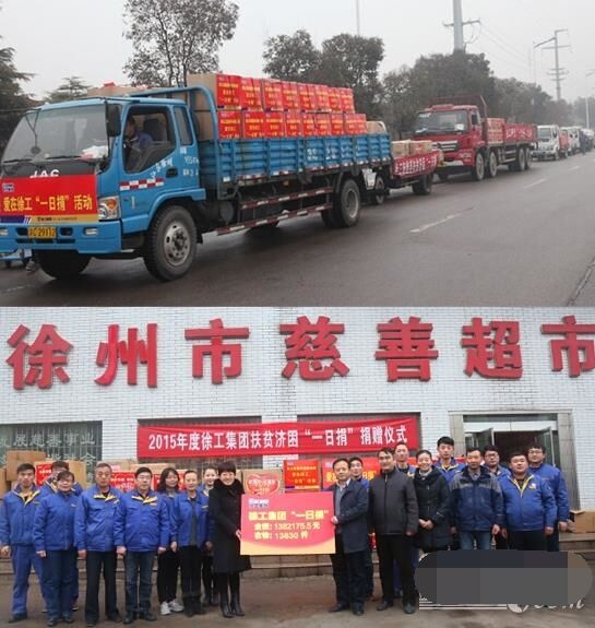 近日,八輛大卡車(chē)滿(mǎn)載著徐工全體員工的捐款和衣物,緩緩駛?cè)胄熘菔猩鐣?huì)幫扶中心,送去徐工承擔(dān)的社會(huì)責(zé)任、徐工人的美德。2015年,在各單位的全力支持和全體員工暖暖愛(ài)心的捐助下,徐工集團(tuán)扶貧濟(jì)困“一日捐”活動(dòng)共收到捐款1382175.5元、捐衣物13830件,連續(xù)14年捐款捐物全市第一。