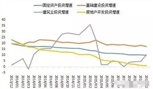 2015年,全國固定資產投資(不含農戶)551590億元,比上年名義增長10%(扣除價格因素,實際增長12%),增速比1-11月份回落0.2個百分點。從環(huán)比速度看,12月份固定資產投資(不含農戶)增長0.68%。建筑業(yè)固定資產投資總額4895億元,同比增長10.2%,增速較1-11月提高了5.4個百分點。今年以來,制造業(yè)投資大勢已去,房地產投資降至歷史低點且尚未見底。由于基建投資具有逆周期特性且保持快速增長,穩(wěn)增長寄希望于基建投資托底。發(fā)改委更是密集批復基建項目助力穩(wěn)增長?;A設施投資(不含電力)101271億元,比上年增長17.2%,增速比1-11月份回落1個百分點。其中,水利管理業(yè)投資增長21%,增速回落2.3個百分點;公共設施管理業(yè)投資增長20.2%,增速回落0.3個百分點;道路運輸業(yè)投資增長16.7%,增速回落0.8個百分點;鐵路運輸業(yè)投資增長0.6%,增速回落0.2個百分點。