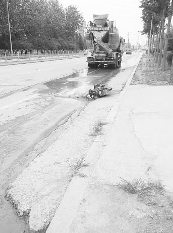 “這個女的騎著電動車,看起來30歲左右,開攪拌車的司機(jī)是個男的,兩人都是由南向北同向行駛。”附近一家商店老板告訴記者,當(dāng)時兩人前面還有一輛灑水車在工作,電動車和攪拌車都避開了這輛灑水車?yán)^續(xù)行駛。