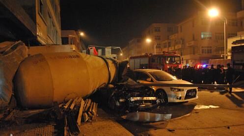 7月27日晚20時40分許,一輛紅色科魯茲小型轎車在槐蔭區(qū)濱河南路由西向東行駛,車上有兩名小伙子,當(dāng)車開到臘山河西路路口時突然迎面撞上了一輛重型特殊結(jié)構(gòu)水泥攪拌車,這輛攪拌車正沿臘山河西路由北向南行駛,車的右側(cè)中部將小轎車彈飛。巨大的撞擊力造成小轎車司機(jī)當(dāng)場死亡,乘車人受重傷。