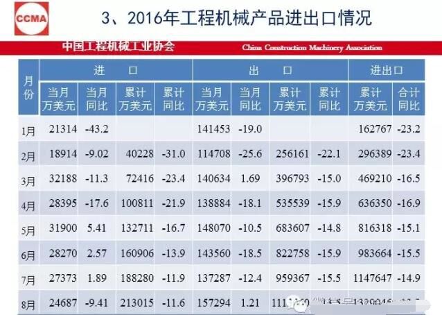 今年9月份挖掘機(jī)同比銷量增加71.4%,1到9月增長(zhǎng)26.3%。出口還是在高位,但是還有13%左右的降幅。在裝備制造業(yè)里,尤其是機(jī)械行業(yè)里,我們還是比較好的,進(jìn)口的數(shù)是越來(lái)越少。